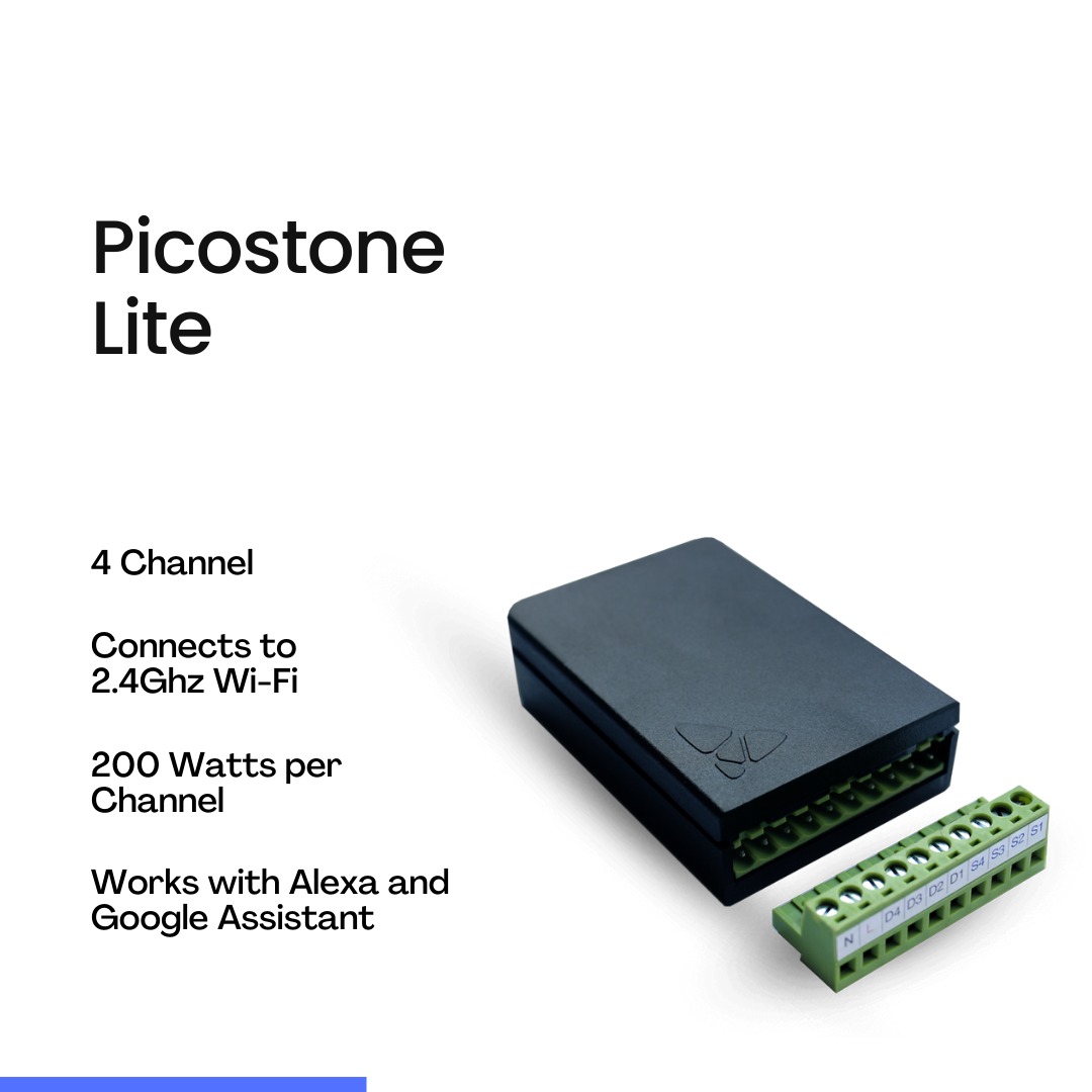 The Picostone Lite 4 channel non-dimmable home automation device is perfect for any smart home, providing you with the ultimate convenience and control over your home’s electrical appliances.